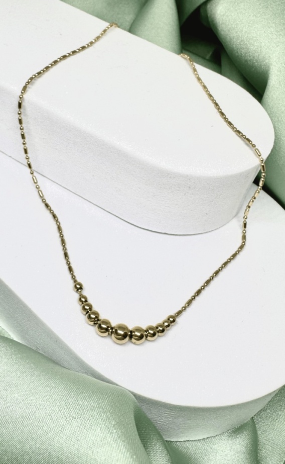 To naszyjnik z ruchomymi kuleczkami w różnych rozmiarach.