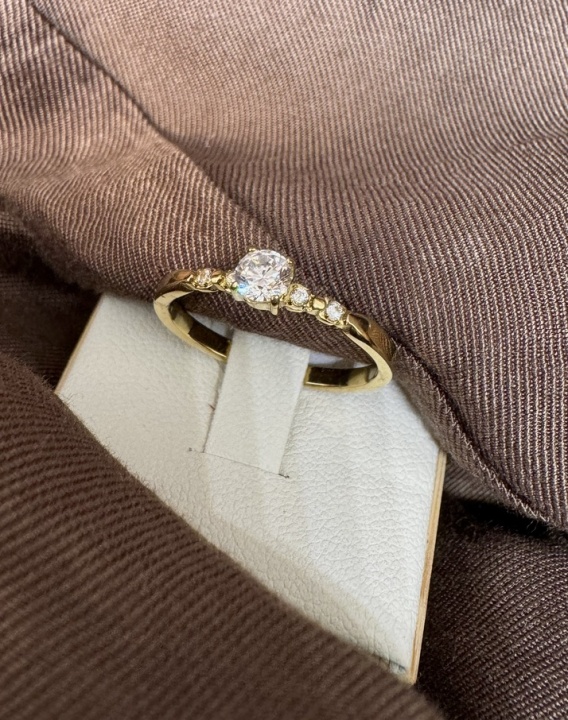SAPHIRA to delikatny, ale zjawiskowy pierścionek w kolorze złotym z oczkiem i czterema cyrkoniami dookoła w rozmiarze 8