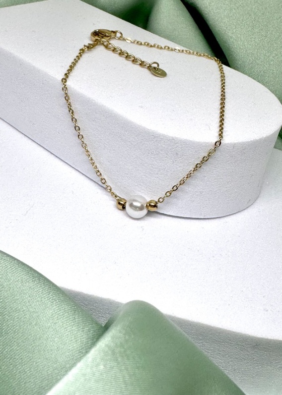 To delikatny łańcuszek z jedną perełką.