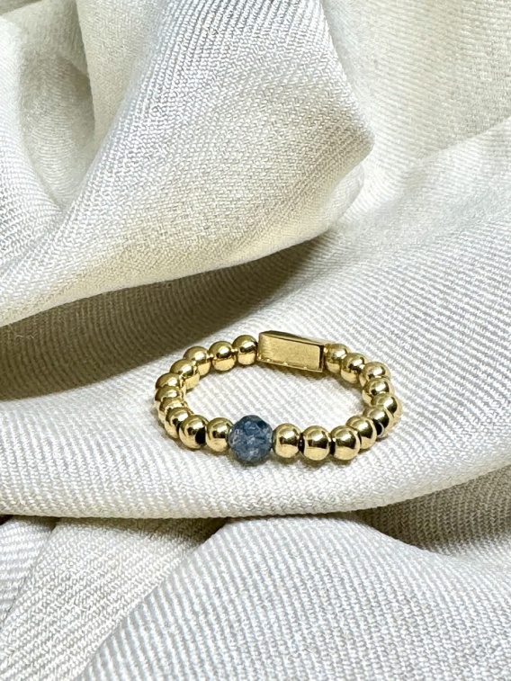Pierścionek POLARIS GREY złożony ze złotych kuleczek i ozdobnym szarym koralikiem.